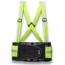 Haute visibilité grâce aux éléments fluorescents et rétroréfléchissants • Confortable grâce à un matériau perméable à l'air et éléments antidérapants • Bretelles réglables et amovibles • Lavable à 30°C • Idéal en prévention : soulage les douleurs existantes, protège, stabilise, favorise la régénération