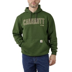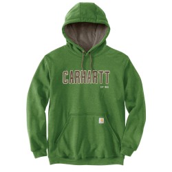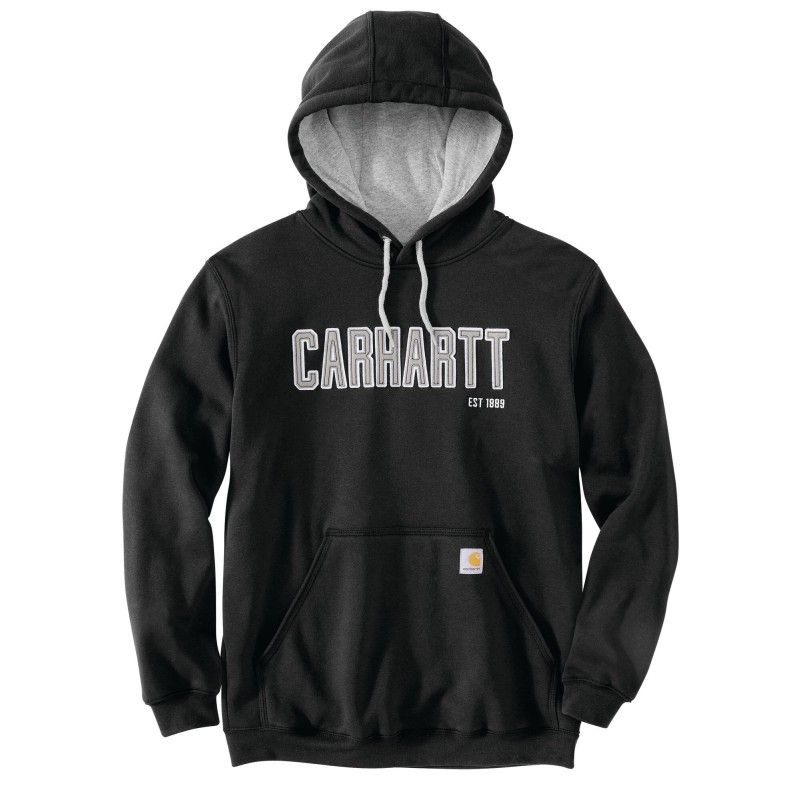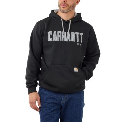 Poids moyen · Capuche 3 parties avec cordon de serrage · Poche frontale avec étiquette Carhartt® cousue · Poignets et tour de taille bords-côtes stretch avec élasthanne · Logo block Carhartt poitrine