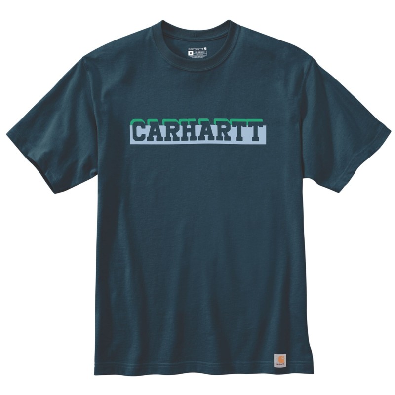 Manches courtes · Col tricot · Coutures bord à bord pour une meilleure tenue · Pas d’étiquette dans le cou pour un meilleur confort · Logo Carhartt® imprimé poitrine · Étiquette Carhartt cousue sur le côté gauche.