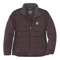 Col montant zippé · Poche poitrine côté gauche avec fermeture zip et étiquette Carhartt cousue · Deux poches avant avec fermeture zip · Deux poches intérieures, une avec fermeture zip, une avec fermeture scratch · Fermeture éclair frontale · Réglage taille par lacet · Empiècement d’aisance sur les côtés · Dos allongé