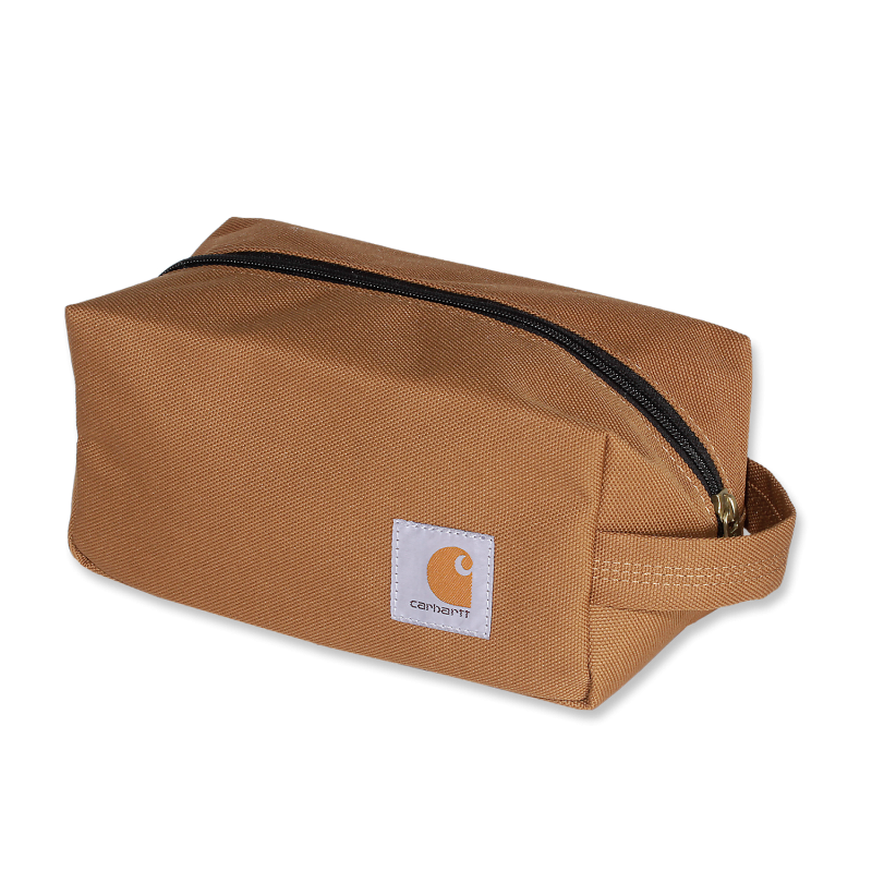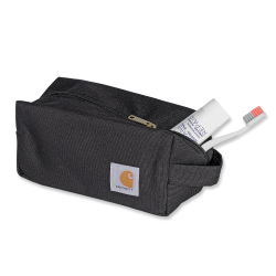 Trousse de voyage • Polyester traitement hydrofuge Rain Defender® Durable Water Repellent • Compartiment principal Water Resistant. Rain Defender® : traitement déperlant Carhartt®. Composition : Polyester 1200 deniers avec traitement hydrofuge Rain Defender® Durable Water Repellent. Dimensions : 22,9 cm x 11,4 cm x 11,4 cm.