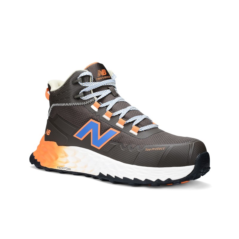 Tige haute synthétique S3 résistante à l’abrasion • Col renforcé eTPU et rembourré pour plus de confort • Logo New Balance eTPU • Renfort embout TOE PROTECT en eTPU • Construction soudée • Embout Composite 200 J • Laçage 2 oeillets synthétique sur le col et laçage textile et boucles lacets textile sur le pied • Doublure maille respirante.