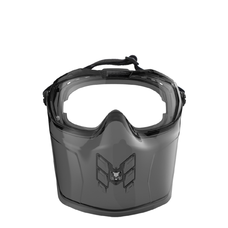 • Lentille sphérique épousant la forme du visage pour offrir un champ de vision large