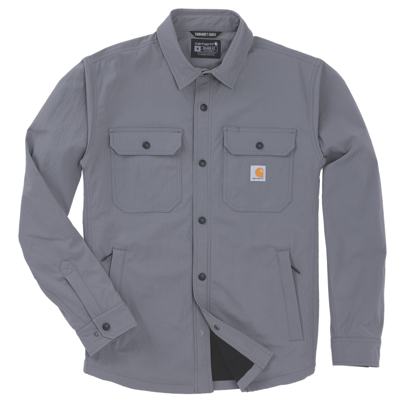 Coupe décontractée • Finition Durable Water Repellent™ résistante à l’eau • Rugged Flex™ – permet une plus grande liberté de mouvement • Carhartt Force™ FastDry™ – technologie conçue pour évacuer la transpiration et sécher rapidement, pour rester au frais et confortable 24h/24 • Col ouvert deux pièces • Deux poches poitrine avec rabats et fermetures à pression • Deux poches avant passepoilées • Fermeture à pression à l’avant • Poignets ajustables à pression avec patte allongée • Ourlet arrière prolongé pour une meilleure couverture • Doublure polaire avec technologie anti-transpiration • Étiquette Carhartt cousue sur la poche • 6 oz/yd² – 204 g/m² • 96 % coton / 4 % élasthanne