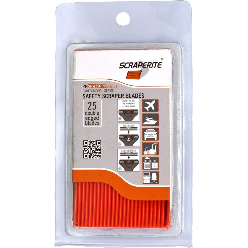 Format large, conçues pour les opérations de raclage en usage général. Lot de 25 lames à double tranchant, compatibles avec les porte-lames SRTW Tradesman.