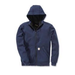 Sweat à capuche zippé, déperlant et anti-vent • Relaxed Fit : Coupe classique • Technologie Wind Fighter™ offrant une excellente protection au vent • Traitement déperlant Rain Defender® • Col montant • Solide fermeture éclair centrale en laiton noir YKK® • Capuche 3 parties avec cordon de serrage • 2 Poches ventrale extérieures avec étiquette Carhartt® cousue côté gauche • Poche poitrine côté gauche avec fermeture zip • Poignets et tour de taille bordscôtes stretch avec élasthanne • Coutures principales triples.