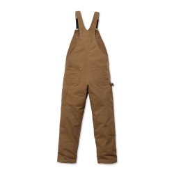 Salopette de travail traditionnelle en Cotton Duck Brut · Relaxed fit : coupe classique • Bretelles réglables avec élastiques sur le devant • Boucles de réglage et attaches en laiton • Poche bavette multiples compartiments plaquée, rivetée et zip • Braguette zippée • Boutons laiton de fermeture latérale • 2 grandes poches avant plaquées rivetées • Poche ticket plaquée rivetée • Découpe des poches avant optimisées pour empécher la chute d'objets • 2 poches arrière plaquées rivetées avec étiquette Carhartt® cousue côté droit • Boucle marteau côté droit • Poches outils jambe gauche • Doubles empiècements cuisses-genoux • Bas de jambes renforcés • Coutures principales triples.