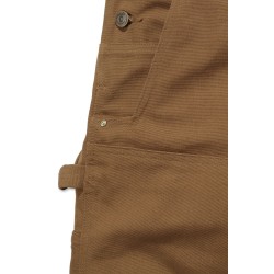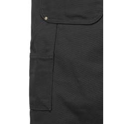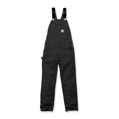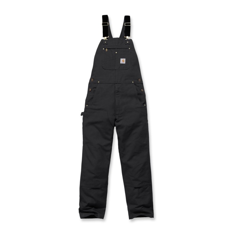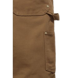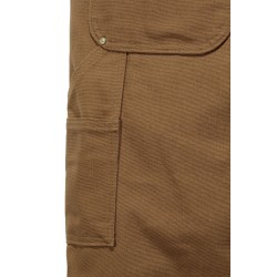 Salopette de travail traditionnelle en Cotton Duck Brut · Relaxed fit : coupe classique • Bretelles réglables avec élastiques sur le devant • Boucles de réglage et attaches en laiton • Poche bavette multiples compartiments plaquée, rivetée et zip • Braguette zippée • Boutons laiton de fermeture latérale • 2 grandes poches avant plaquées rivetées • Poche ticket plaquée rivetée • Découpe des poches avant optimisées pour empécher la chute d'objets • 2 poches arrière plaquées rivetées avec étiquette Carhartt® cousue côté droit • Boucle marteau côté droit • Poches outils jambe gauche • Doubles empiècements cuisses-genoux • Bas de jambes renforcés • Coutures principales triples.