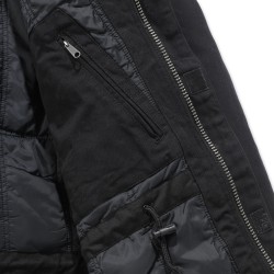 Col velours · Fermeture éclair frontale double sens avec rabat protège vent scratch · Deux poches poitrine avec fermeture bouton-pression · Deux grandes poches avant plaquées · Poignets anti-tempête en bords-côtes à l’intérieure des manches · Deux poches intérieures ; une avec fermeture scratch et une avec fermeture zip · Réglage taille par lacet · Coutures principales triples.