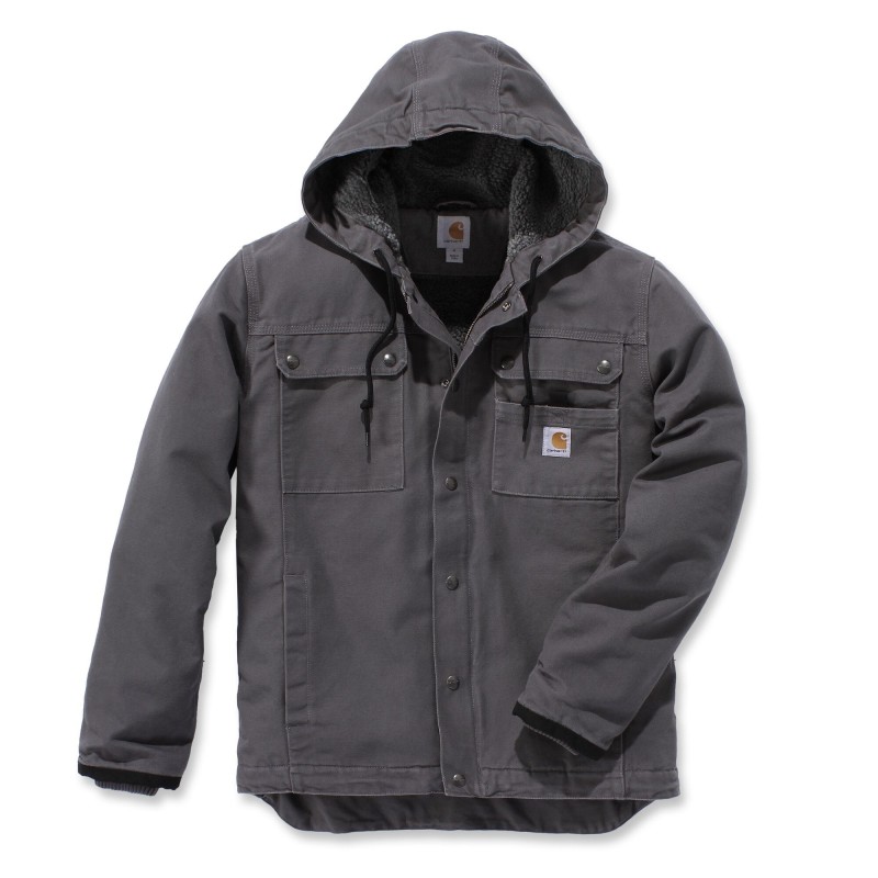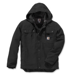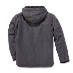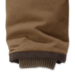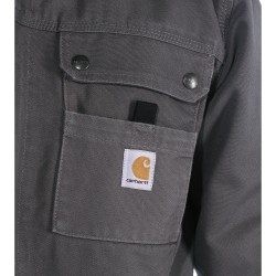 Blouson Cotton Duck à capuche • Conception ergonomique et soufflet au dos pour une plus grande aisance et une meilleure liberté de mouvements • Capuche 3 parties avec cordon de serrage réglable • Fermeture éclair centrale avec rabat tempête et boutons-pression • 2 poches intérieures : une à fermeture zip et une avec scratch • 2 poches poitrine fermeture boutons-pression avec poche scratch supplémentaire côté gauche et étiquette Carhartt® cousue • 2 poches sur le devant • Poignets anti-tempête en bords-côtes à l'intérieur des manches • Renforts Cordura® aux poignets • Coudes préformés • Dos allongé • Réglage taille par lacet • Coutures principales triples • Zip YKK® .