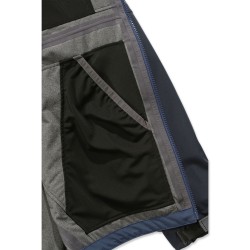 Capuche 3 pièces à visière avec cordon de serrage réglable par lacet · Membrane étanche et respirante · Col montant · Fermeture éclair avant à double sens · Poche poitrine côté gauche avec fermeture éclair étanche · 2 grandes poches avant avec fermeture éclair et rabat · Poche intérieure · Poignets avec scratch réglable · Dos allongé · Cordon de serrage élastique au niveau de la taille. Force® : évacue la transpiration, excellente tenue au lavage, traitement anti-tâche