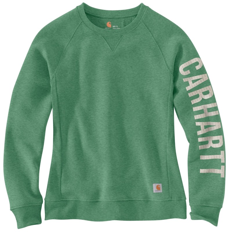 RELAXED FIT : coupe ajustée Col rond tricot · Manches longues · Poignets et tour de taille bords-côtes stretch avec élasthanne · Etiquette Carhartt® cousue sur le bas, côté gauche · Logo block Carhartt sur la manche gauche