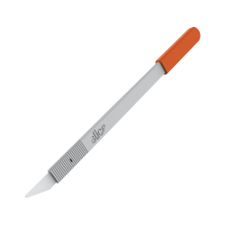 Scalpel jetable à lame en céramique Slice®. Son manche mince et plat (de 3 mm d'épaisseur seulement, sans son capuchon) est capable de pénétrer dans les espaces restreints. Manche légèrement lesté pour procurer équilibre et stabilité. Lames chimiquement inertes, qui ne rouillent pas. Les lames sont autoclavables et sans danger jusqu'à 1 600 °C. Stérilisé par rayonnement gamma, emballage individuel