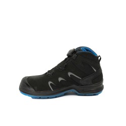 Tige en cuir et maille avec empiècements réfléchissants • Support System® : protection et maintien du talon renforcé • Protection de l’embout PU • Doublure en maille respirante AT488 3D Airmesh • Membrane imper-respirante • BOA® Fit System • Embout composite 200J. Semelle Bionik : TPU Vibram® bleue translucide et injection PU • Insert absorbeur de chocs en PU • SRC : excellente adhérence sur sols humides, gras et secs • Semelle anti-perforation textile • Semelle intérieure en maille respirante amovible, anatomique, perforée et traitée anti-bactérienne réf. F00S.PE BIANCO+AT488SP Grey. EN20345: 2012 S3 SRC WR