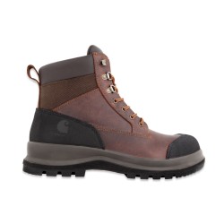 Tige : cuir gras pleine fleur oléo-hydrofuge, coutures triples au points de tension, logo Carhartt, renforcé par empiècement de cuir enduits de PU au talon et sur l’embout