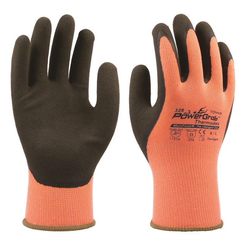 Grip • MicroFinish® : Optimal en conditions grasses et huileuses, excellent grip sec et humide • Confort • L’enduction micro-poreuse permet à la main de respirer et de minimiser les efforts • Nappage intérieur pour une sensation de douceur et une chaleur supplémentaire • Enduction • Double en latex naturel micro-poreux • Support • Polyester nylon tricoté sans couture jauge 13 extérieur et nappage intérieur thermique acrylique sans coutures • Couleurs • Enduction marron, support orange. APPLICATIONS • Logistique et entreposage • Tous travaux extérieur dans le froid • Plateforme pétrolière • Bâtiment et construction. CONDITIONNEMENT • Lot de 12 paires (sachets individuels)